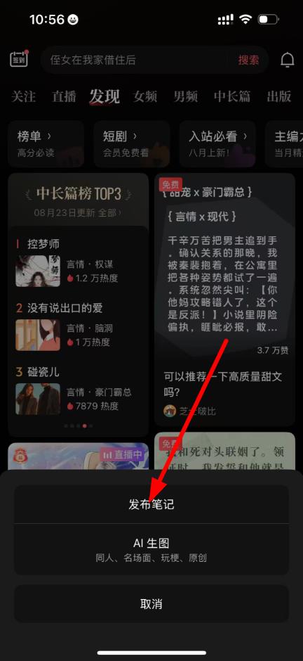 2、在彈出的菜單中,點(diǎn)擊發(fā)布筆記選項(xiàng)。