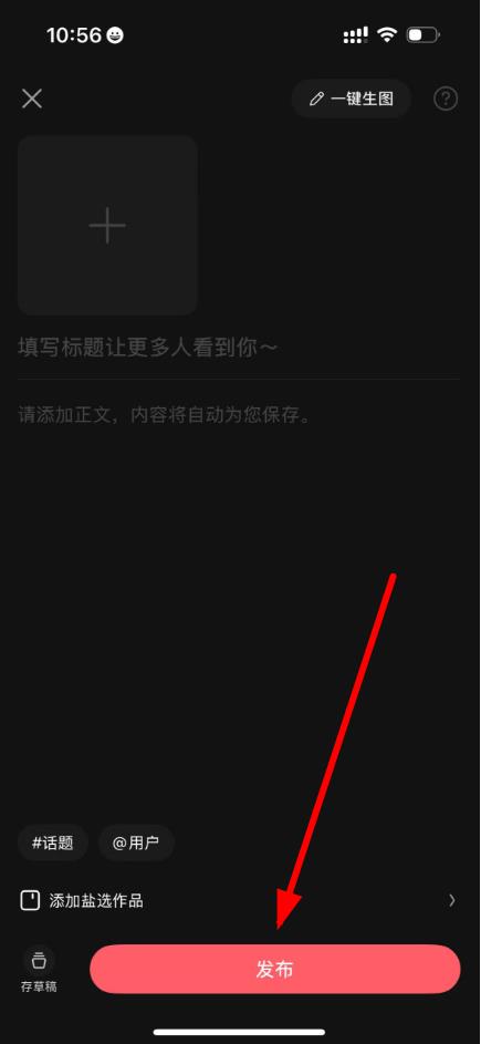 3、進(jìn)入發(fā)布頁(yè)面后,添加相關(guān)圖片可選,填寫(xiě)標(biāo)題和正文內(nèi)容完成后,點(diǎn)擊底部的發(fā)布按鈕即可。