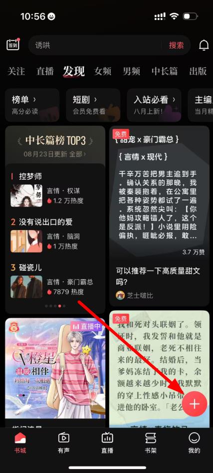 1、打開(kāi)鹽言故事App,在主界面點(diǎn)擊右下角的+號(hào)按鈕。