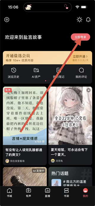 1、在鹽言故事書(shū)城頁(yè)面,點(diǎn)擊有聲選項(xiàng),進(jìn)入有聲頻道。