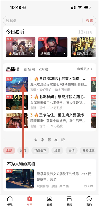 2、在有聲頻道,選擇想聽(tīng)的有聲書(shū),進(jìn)入播放頁(yè)面。