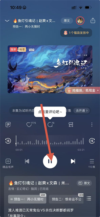 3、在播放頁(yè)面,點(diǎn)擊播放按鈕,即可開(kāi)始聽(tīng)書(shū),可查看播放進(jìn)度等內(nèi)容。