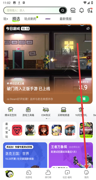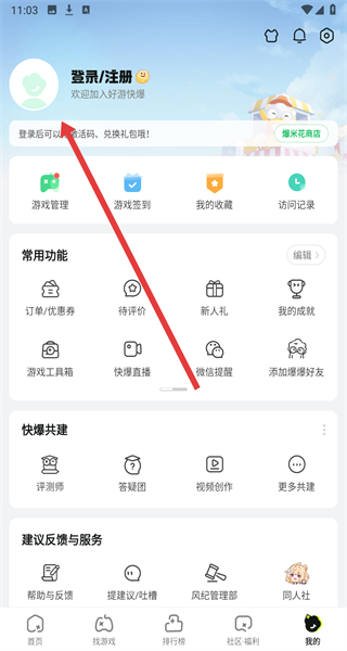 1、在好游快爆主界面點擊右下角“我的”,進(jìn)入個人頁面。