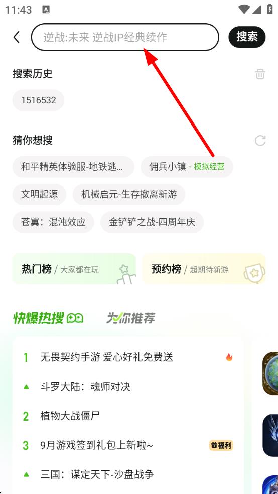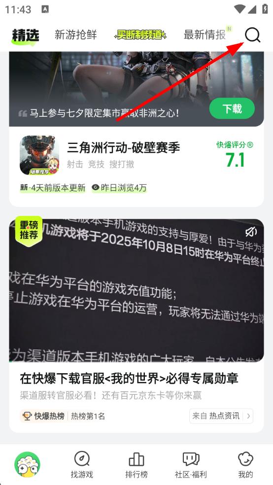 1、打開好游快爆APP,點(diǎn)擊首頁(yè)右上角的搜索圖標(biāo),進(jìn)入搜索頁(yè)面。