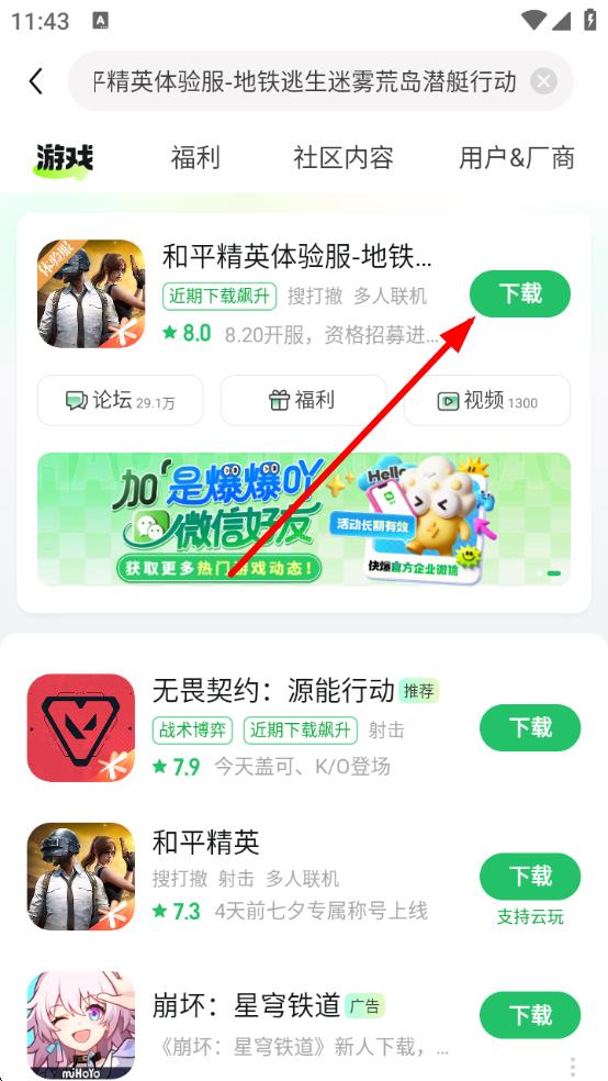 3、在搜索結(jié)果中,找到對(duì)應(yīng)游戲,點(diǎn)擊游戲旁的下載按鈕,下載安裝后即可通過(guò)游戲內(nèi)相關(guān)功能查看或使用游戲ID。