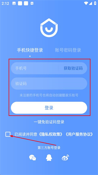 3、勾選,輸入手機(jī)號(hào)并獲取驗(yàn)證碼,點(diǎn)擊登錄,完成注冊(cè)。