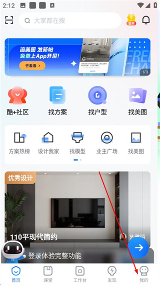 1、打開酷家樂APP,點(diǎn)擊底部我的選項(xiàng),進(jìn)入個(gè)人中心頁面。