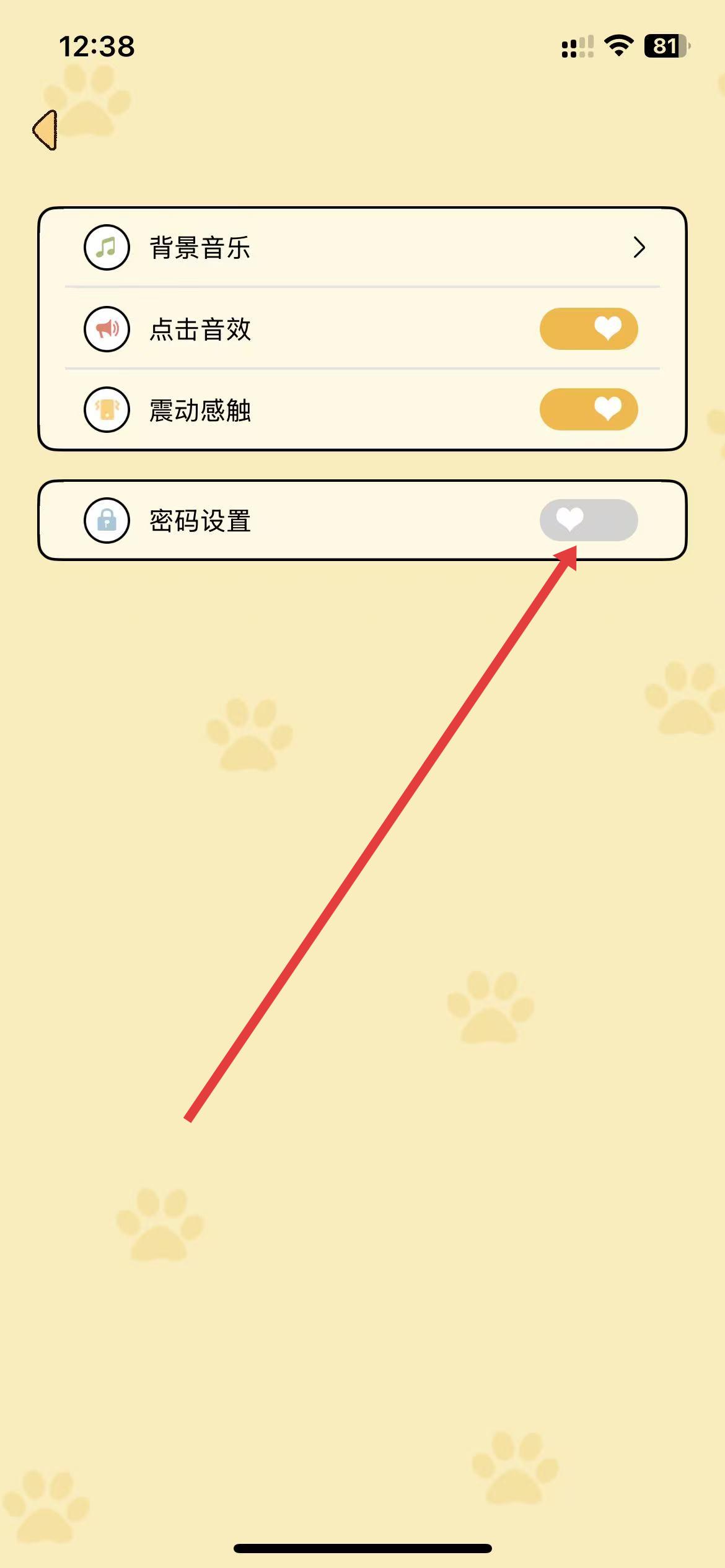 3、找到并點(diǎn)擊密碼設(shè)置選項,將其右側(cè)的開關(guān)按鈕開啟。