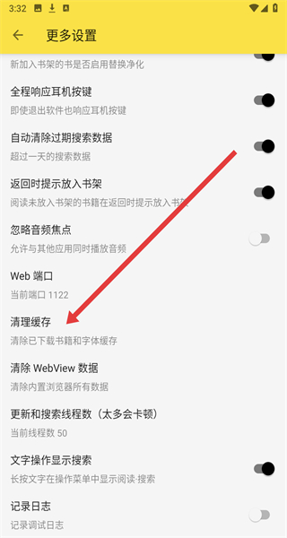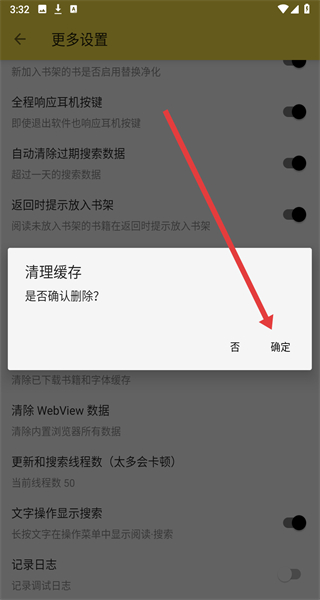 3、在更多設(shè)置界面點擊“清理緩存”,彈出清理緩存確認彈窗。