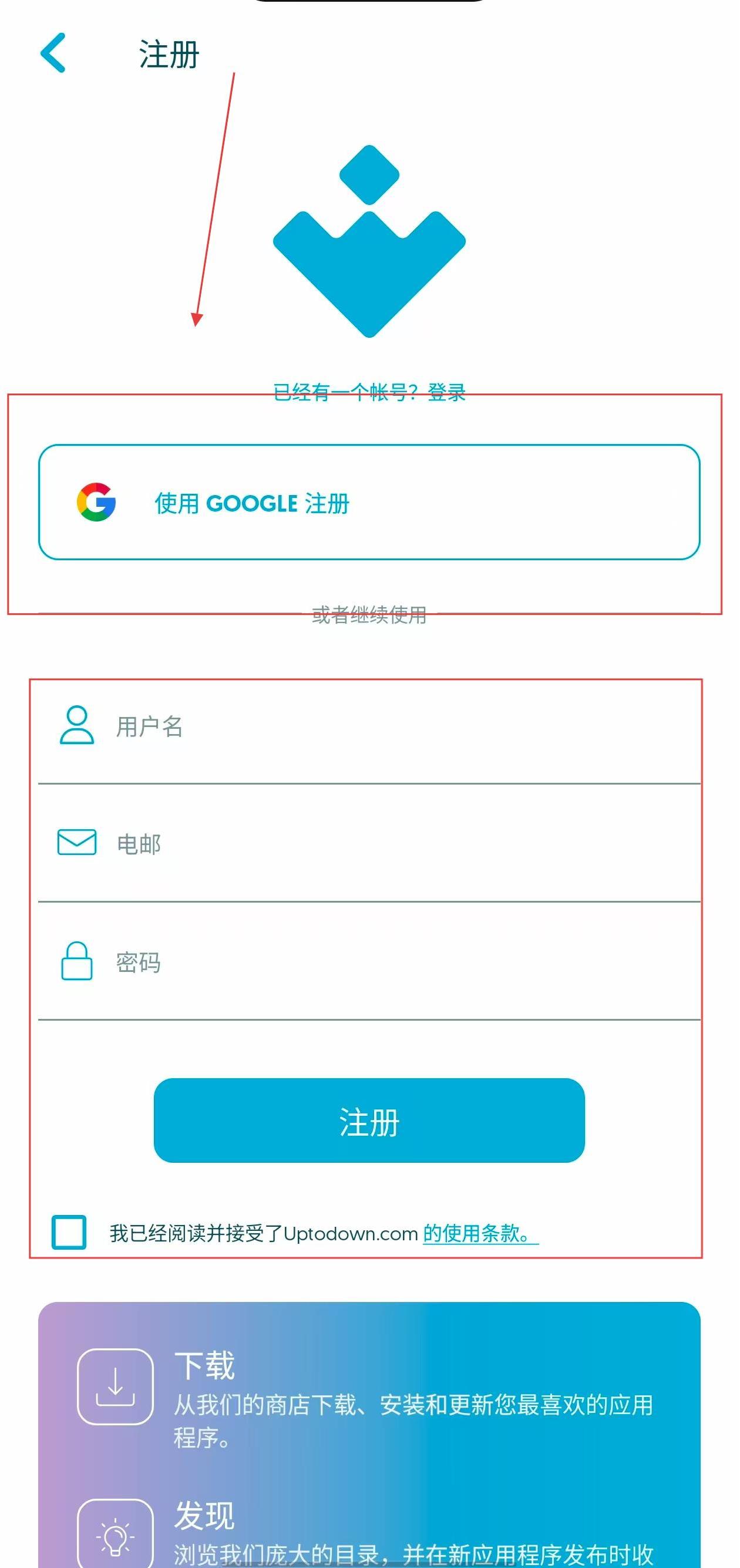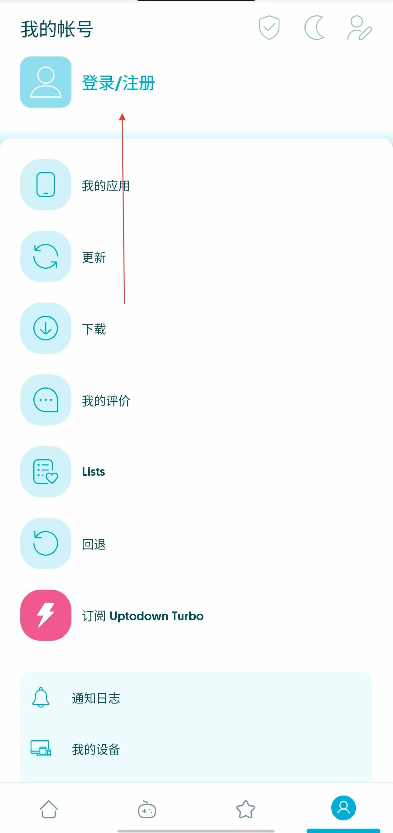 1、打開(kāi)Uptodown應(yīng)用,點(diǎn)擊界面右下角的個(gè)人中心圖標(biāo),進(jìn)入我的帳號(hào)頁(yè)面。