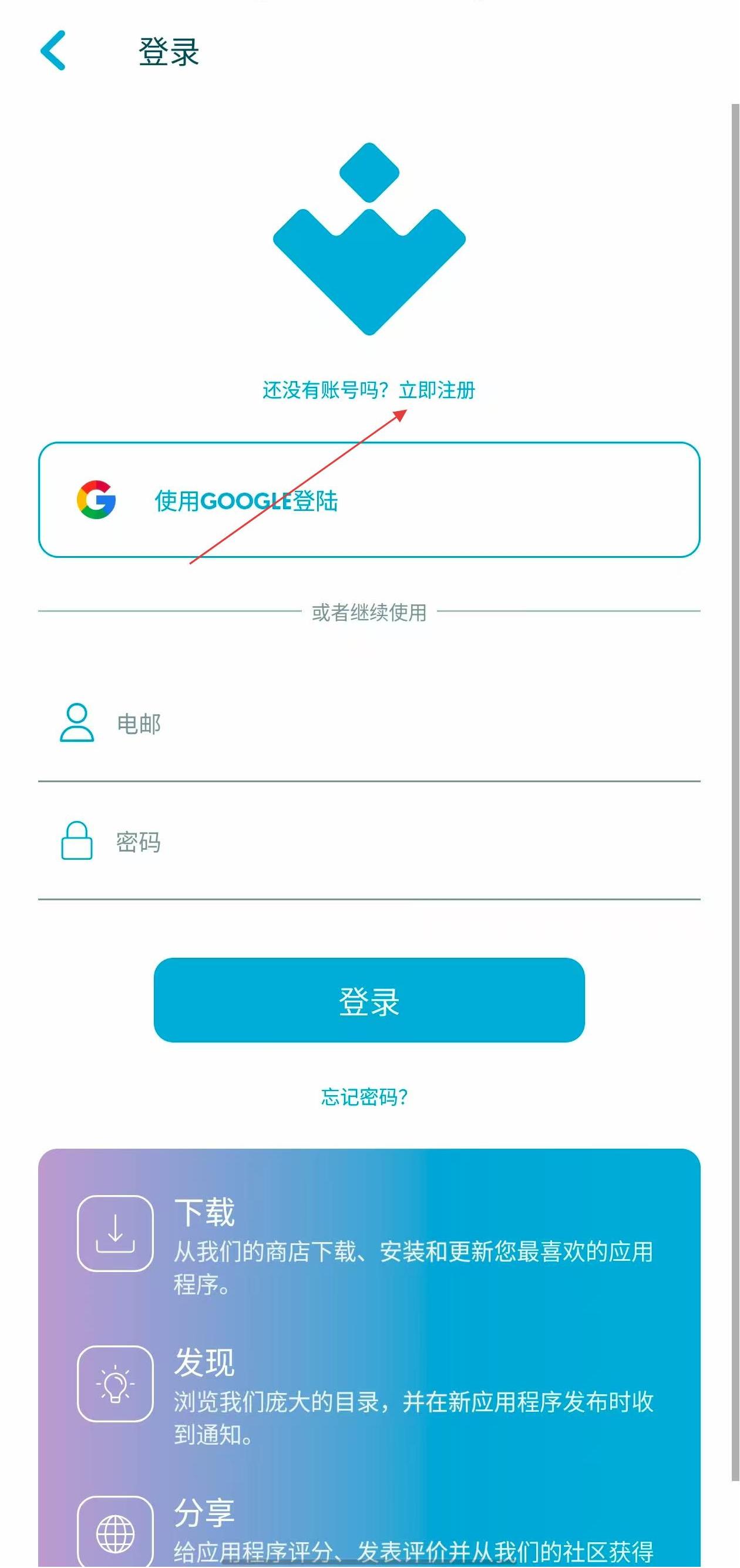 3、在登錄或注冊(cè)界面,若沒(méi)有賬號(hào),點(diǎn)擊立即注冊(cè)選項(xiàng),進(jìn)入注冊(cè)頁(yè)面。
