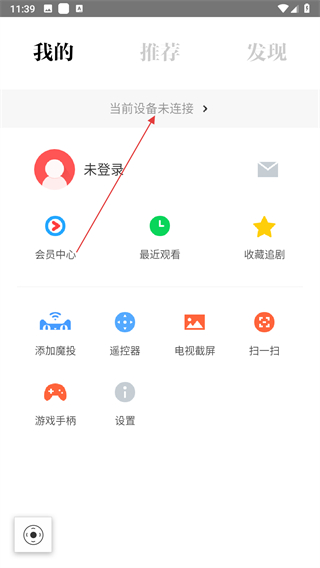 1、打開(kāi)阿里TV助手APP,點(diǎn)擊當(dāng)前設(shè)備未連接選項(xiàng)。