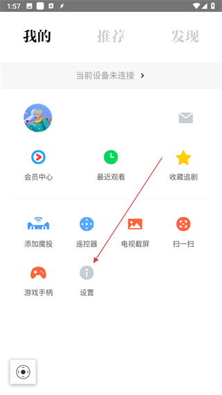1、打開(kāi)阿里TV助手APP,在個(gè)人中心頁(yè)面點(diǎn)擊設(shè)置。