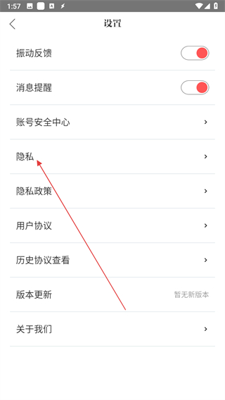 2、在設(shè)置頁(yè)面點(diǎn)擊隱私選項(xiàng),進(jìn)入隱私設(shè)置頁(yè)面。