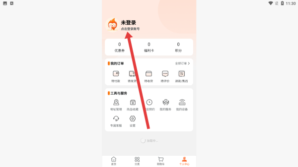 2、在個(gè)人中心頁(yè)面點(diǎn)擊頂部點(diǎn)擊登錄賬號(hào)區(qū)域,跳轉(zhuǎn)至注冊(cè)登錄頁(yè)面。