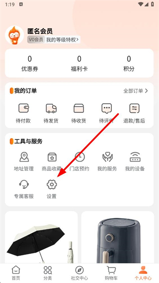 1、打開(kāi)壹品慧APP后,在個(gè)人中心界面找到設(shè)置選項(xiàng)并點(diǎn)擊,進(jìn)入設(shè)置頁(yè)面。