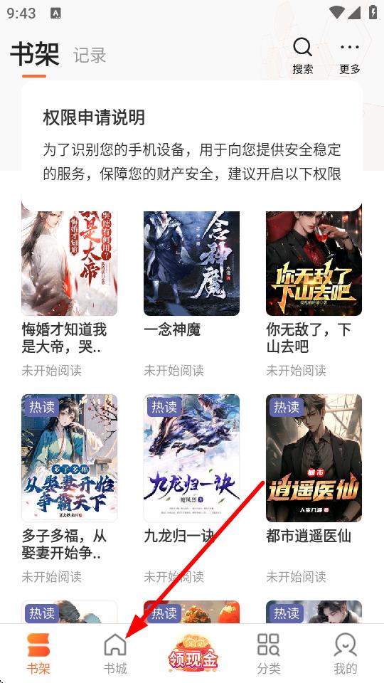 1、打開盛讀app,點(diǎn)擊底部導(dǎo)航欄中的書城選項(xiàng)進(jìn)入書城頁面。