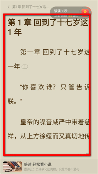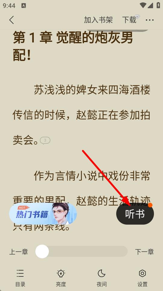 3、進(jìn)入小說閱讀界面后,點(diǎn)擊屏幕中的聽書按鈕。