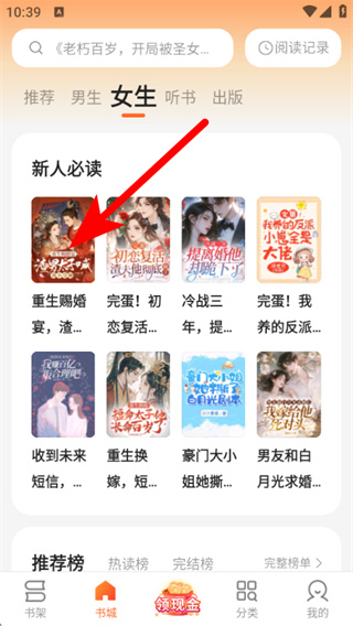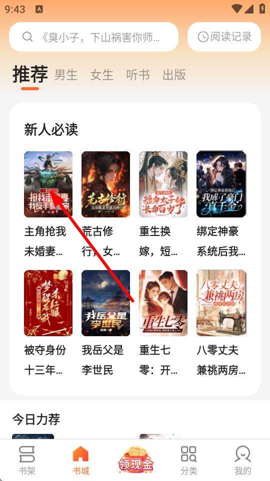 2、在書城的推薦列表中,選擇一本你感興趣的小說,如主角搶我未婚妻,我反手偷他家。