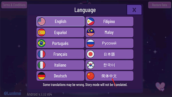 2、在這里可以看到該游戲所支持的哪些語言,我們當(dāng)然選擇中文進行游戲體驗啦;