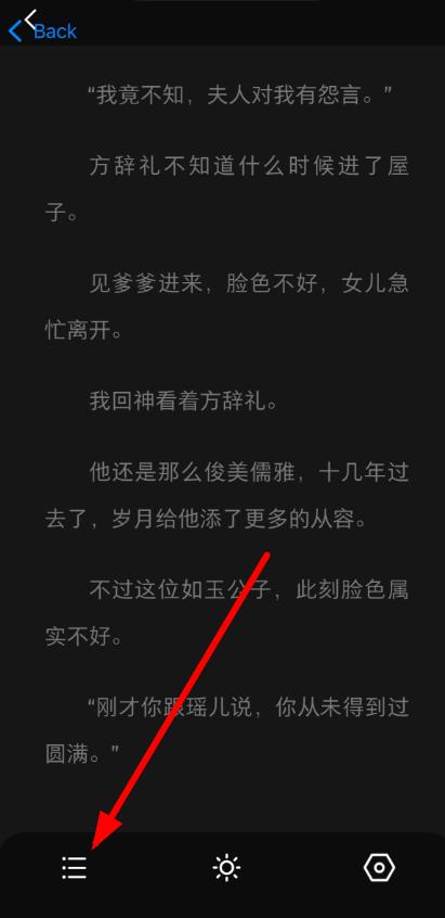 2、在小說閱讀界面,點(diǎn)擊屏幕底部左側(cè)的目錄圖標(biāo)類似三條橫線的圖標(biāo)。