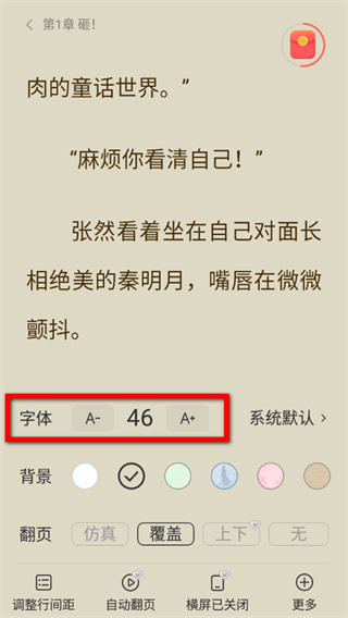 2、在小說閱讀頁面,點(diǎn)擊設(shè)置選項,彈出字體設(shè)置菜單。
