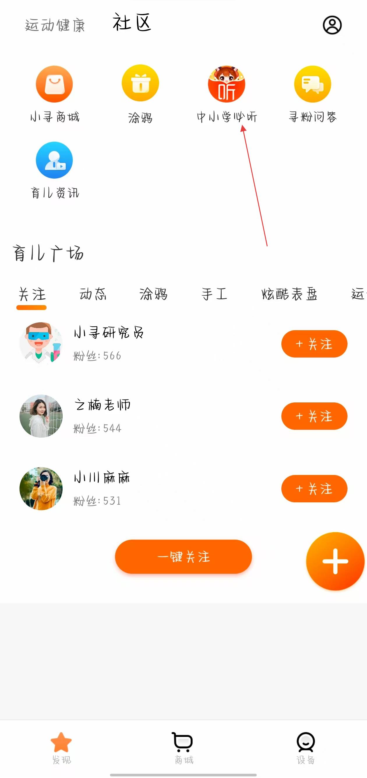 1、打開(kāi)小尋APP,點(diǎn)擊底部導(dǎo)航欄的發(fā)現(xiàn)選項(xiàng),進(jìn)入發(fā)現(xiàn)頁(yè)面。