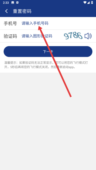 4、點擊輸入框依次填寫手機號碼和圖形驗證碼后,完成重置密碼操作。