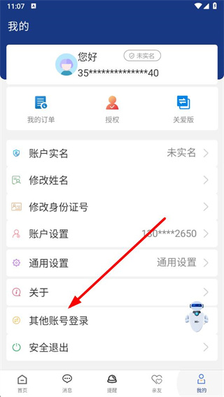 3、在頁面選擇登錄方式,輸入完成后點擊登錄按鈕,完成其他賬戶的登錄操作。