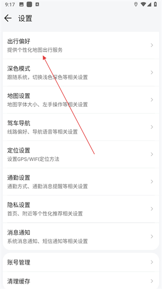 3、進(jìn)入設(shè)置界面之后,找到并點擊出行偏好的選項。