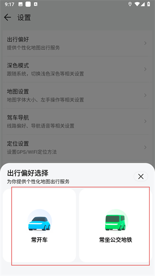 4、在彈出的出行偏好選擇窗口中,根據(jù)自身需求選擇即可。