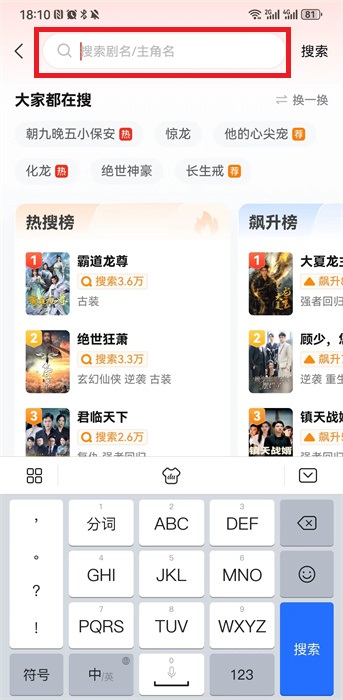 2、在搜索界面中,輸入我們想看的【作品名稱】然后點(diǎn)擊搜索就可以;