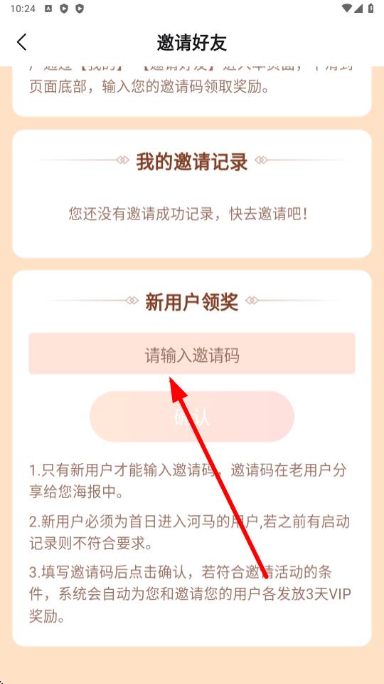 3、在邀請(qǐng)好友界面的新用戶領(lǐng)獎(jiǎng)區(qū)域,點(diǎn)擊請(qǐng)輸入邀請(qǐng)碼輸入框,填入邀請(qǐng)碼即可。
