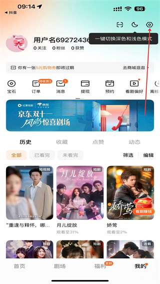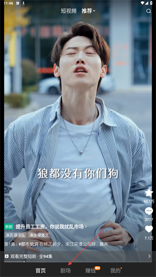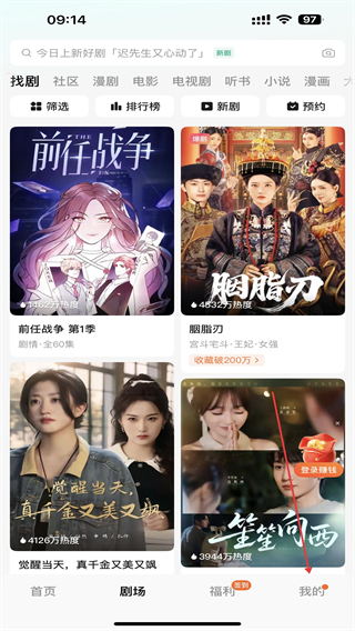1、啟動(dòng)紅果的APP,進(jìn)入時(shí)點(diǎn)擊導(dǎo)航欄中劇場(chǎng)的標(biāo)簽。
