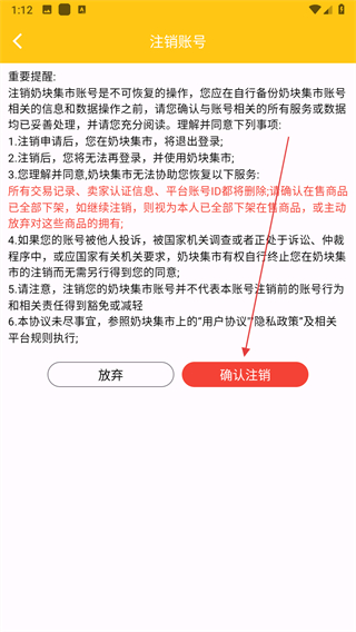 4、閱讀注銷須知后,點(diǎn)擊確認(rèn)注銷按鈕,完成賬號(hào)注銷。