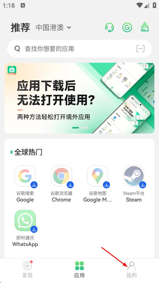 1、打開境外應用類軟件,點擊頁面右下角“我的”選項,進入個人頁面。