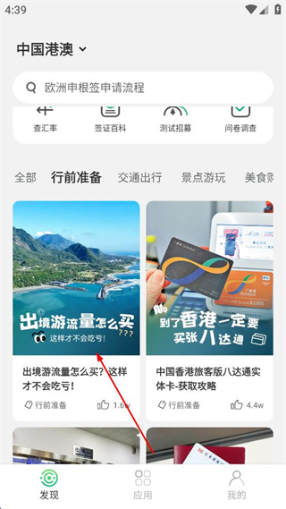 3、在行前準備內(nèi)容界面選擇出境游流量怎么買?這樣才不會吃虧!的文章。