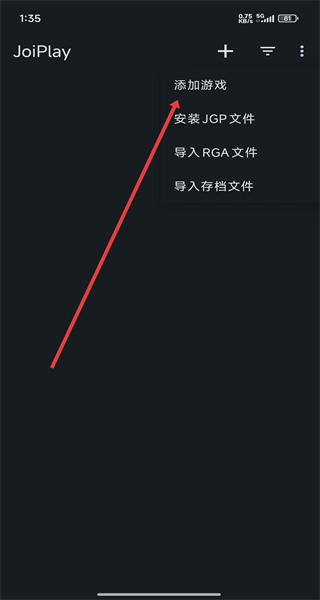 1、在JoiPlay主界面點(diǎn)擊右上角“+”按鈕,彈出功能菜單。