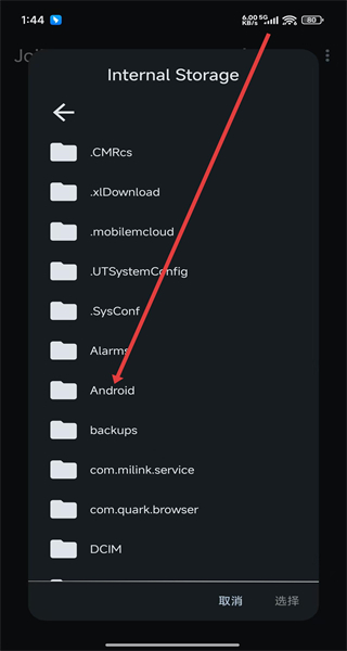 4、在目錄界面中點(diǎn)擊“Android”文件夾,繼續(xù)選擇游戲可執(zhí)行文件以完成添加。