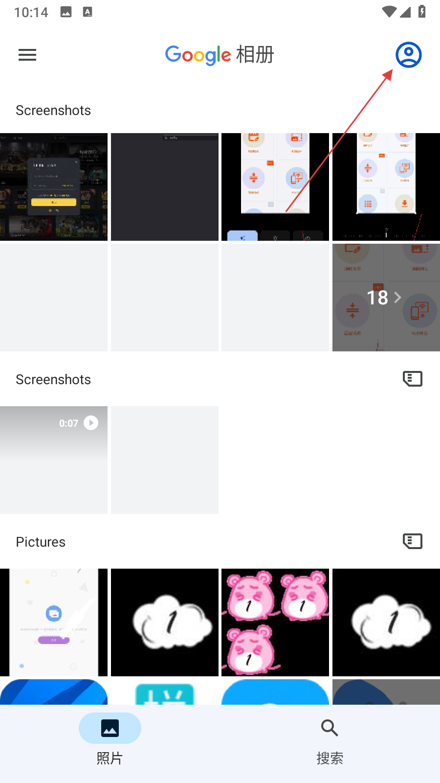 1、打開谷歌相冊APP,點擊界面右上角的個人賬號圖標(biāo),彈出包含登錄,相冊設(shè)置等選項的菜單。