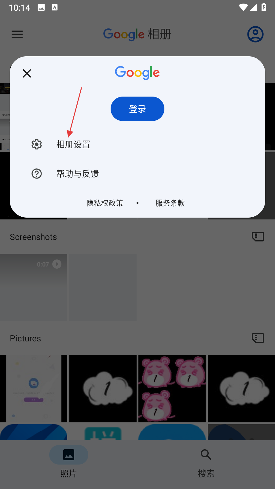 2、在彈出的菜單中,點擊相冊設(shè)置選項,進入谷歌相冊的設(shè)置頁面。