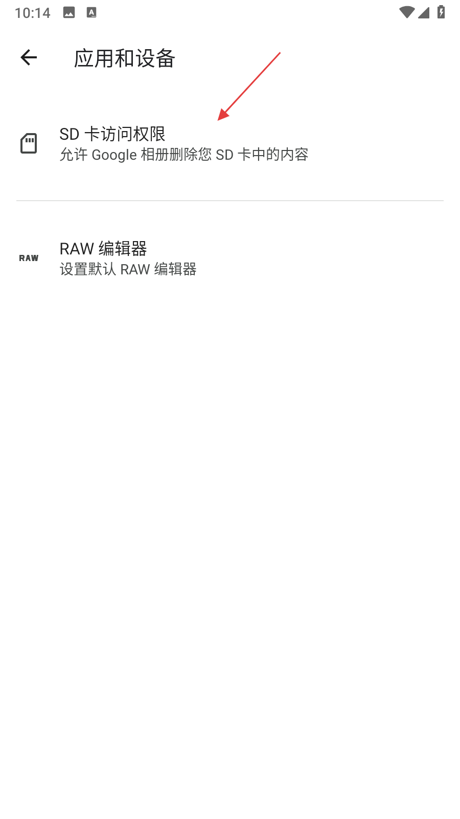 4、在應(yīng)用和設(shè)備設(shè)置界面中,找到并點擊SD卡訪問權(quán)限選項,即可對谷歌相冊的SD卡權(quán)限進行設(shè)置。