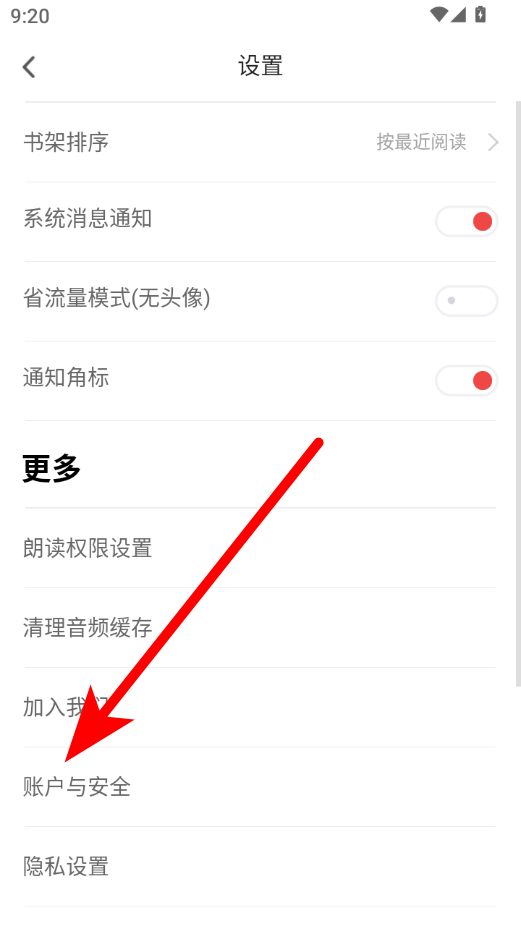3、在設(shè)置頁面,點擊賬戶與安全選項,進(jìn)入個人信息界面。