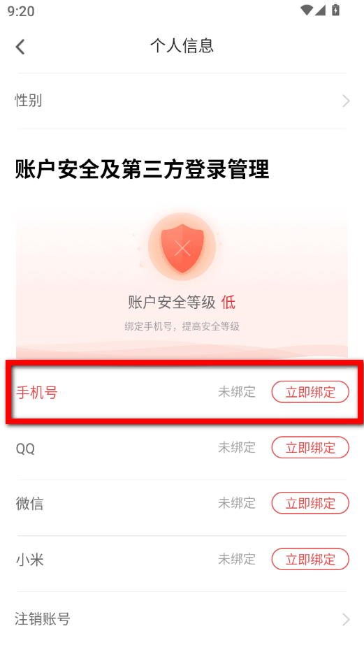 4、在個人信息界面,點擊手機(jī)號后的立即綁定選項,按提示完成手機(jī)號綁定操作。