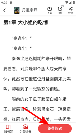 1、在追書神器書籍章節(jié)頁面,點擊免費(fèi)閱讀按鈕,進(jìn)入書籍閱讀界面。