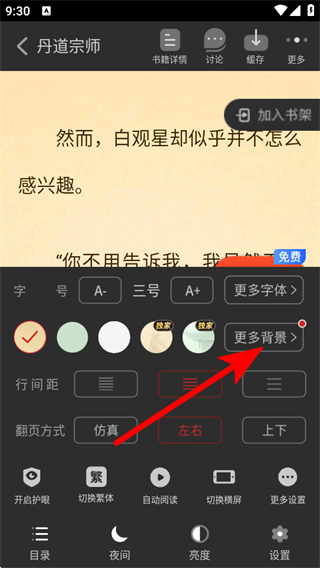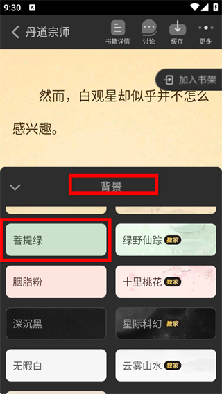 4、在背景選擇界面,點擊想要的背景圖,即可更換閱讀背景。