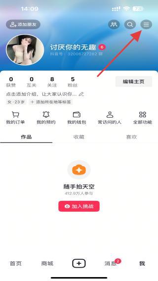 2、在個人中心頁面,找到并點擊三個橫線的圖標功能。