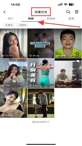 4、在觀看歷史的頁面內(nèi),切換視頻的標簽即可觀看視頻的觀看歷史記錄。