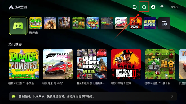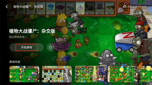1、打開(kāi)3a云游戲應(yīng)用,進(jìn)入游戲中心界面,在熱門推薦里找到想玩的游戲,比如植物大戰(zhàn)僵尸:融合版。