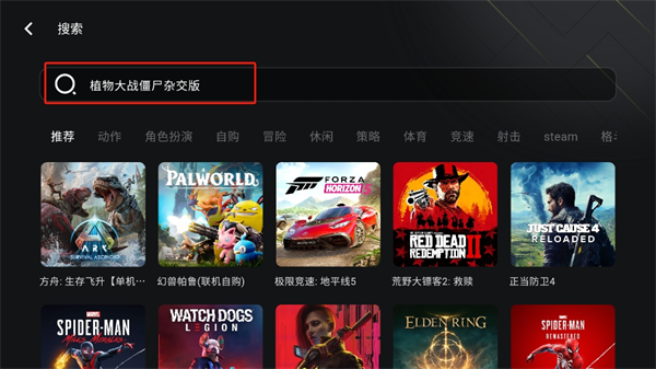 2、在搜索欄中輸入我們想要找尋的游戲,以植物大戰(zhàn)僵尸雜交版為例;